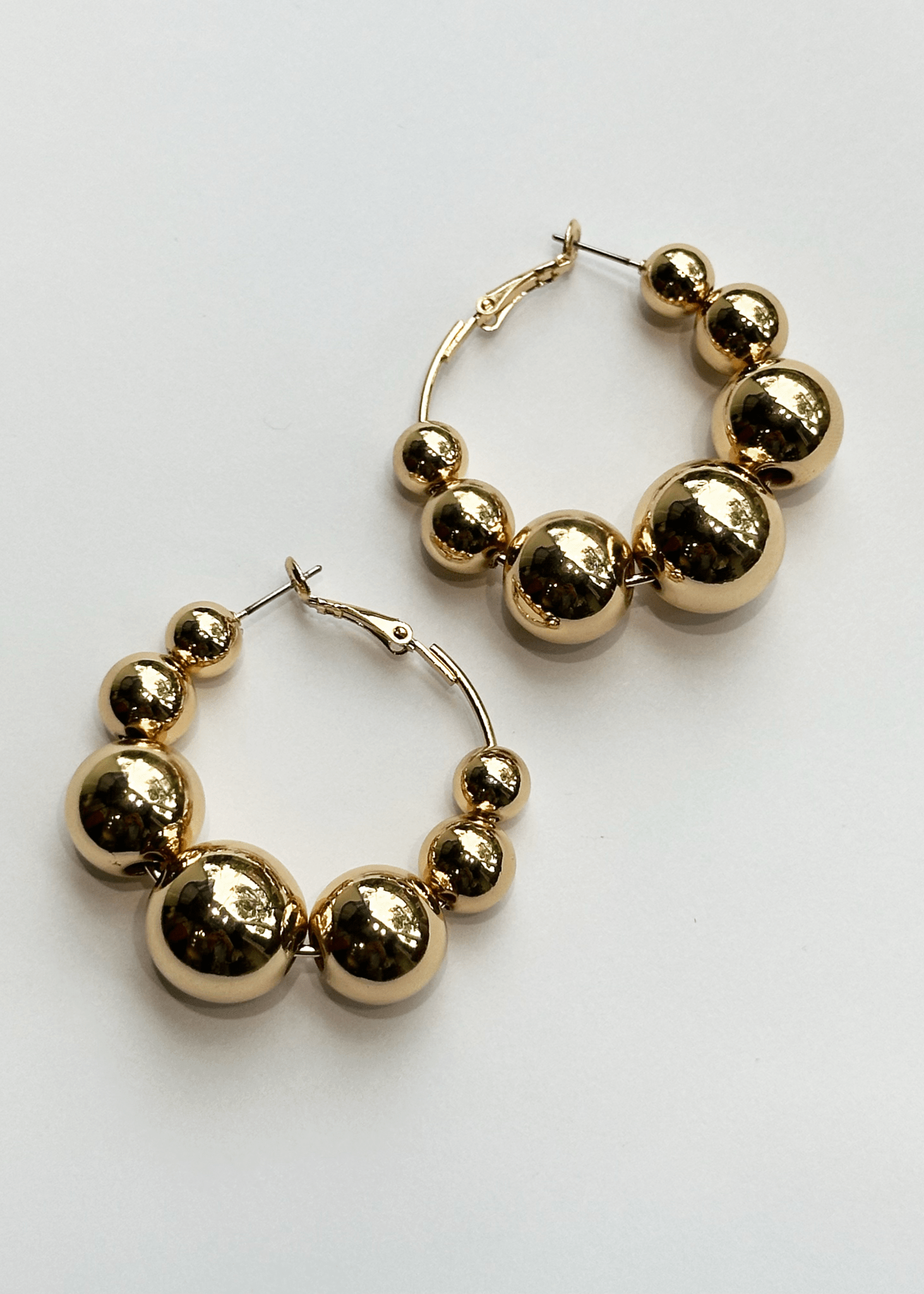 Blue Sky - Chunky Ball Hoop Earrings - Gold